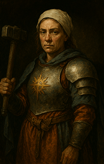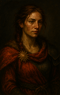 Lawful Neutral | Fighter/Cleric | Blushing Mermaid Inn (Dhedluk) | When asked about her past, DALORNA DAERLUN answers with quiet conviction, her voice carrying the weight of both faith and fatigue. Once a mercenary’s daughter raised among the alleys and shrines of Daerlun, she found her calling not through revelation, but through necessity. The gods, she claims, do not always choose their servants — sometimes they simply find one still standing after all others have fallen. A life of conflict tempered her into steel, and from battlefields drenched in both glory and grief, she emerged a soldier-priest devoted as much to healing as to the strike of her hammer. Those who know her speak of discipline born from pain and compassion forged from loss. Yet behind her resolute calm lies a weariness she seldom betrays, as though each prayer and each victory remind her how much has already been taken. In her faith burns not serenity, but endurance — the steadfast fire that refuses to die. |