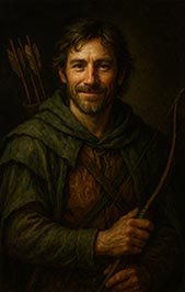Neutral Good | Ranger (Stalker) | Hills South of Minroe | When asked about his past, MORLAN HAWKSONG gives little more than a quiet nod and a faint, knowing smile. Born in the wooded reaches near Immersea, he was a huntsman before he was ever a warrior, living by his bow and his wits among the whispering trees. The forest became his temple, and its silence his teacher. When brigands burned his village and the Cormyrean patrols came too late, Morlan swore fealty not to crown or creed, but to balance — the justice that the wild itself demands. Those who walk beside him find comfort in his calm and unease in his distance. He speaks softly, as though his words might startle the world awake, yet his arrows fly with the certainty of conviction. There is gentleness in him, though it is sheathed like a blade — not gone, but waiting, patient as the forest that shaped him. |